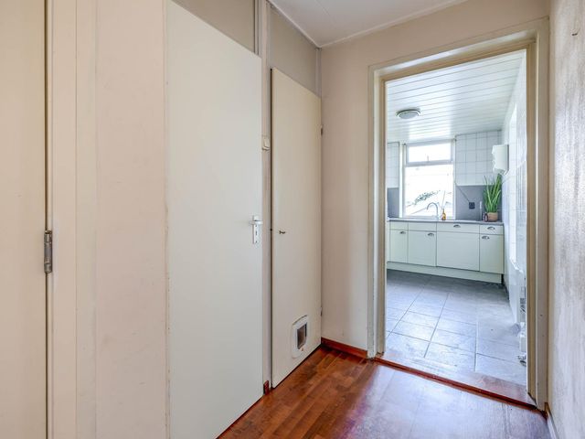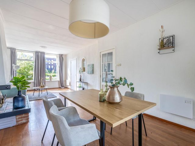 A special ground floor house situated to the water with two bedrooms on the upper floors and an exceptionally large back garden with a shed and/or workshop of 24m2. At a short distance from the centre of Delft, TU and Delftse Hout you have a wonderful opportunity to furnish and renovate the house to your own taste. Please note the size of the garden, which is approximately 21 by 6 metres!!