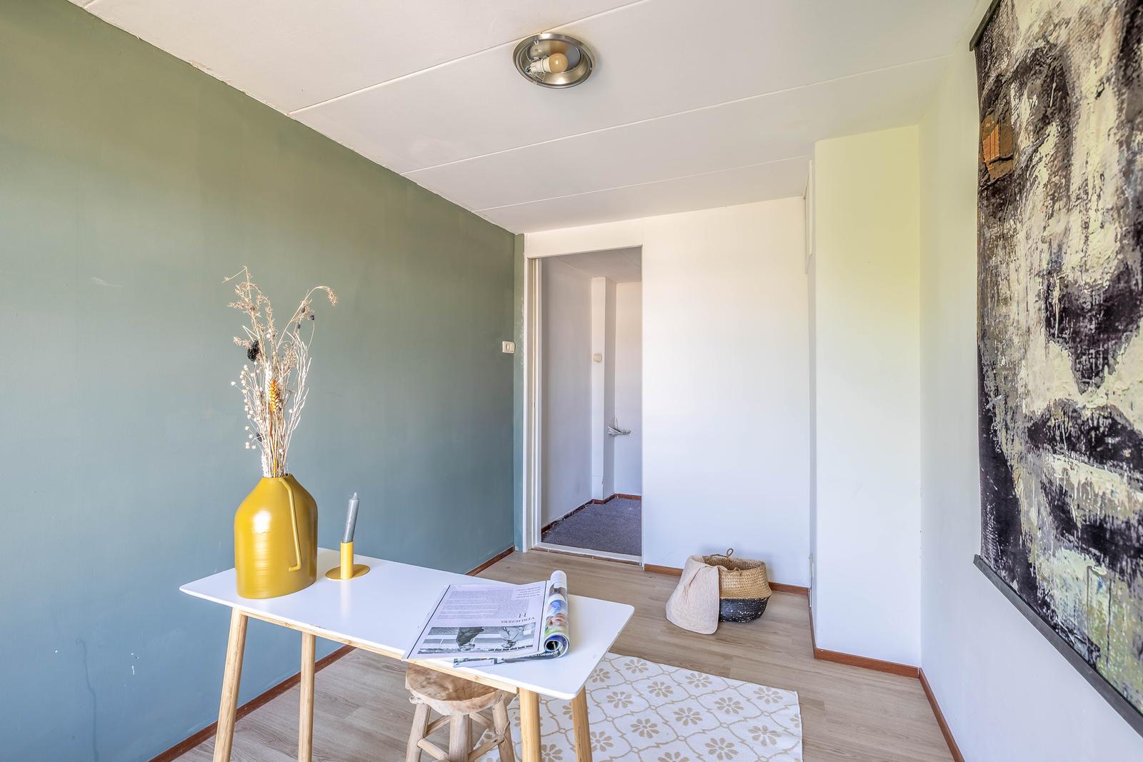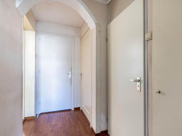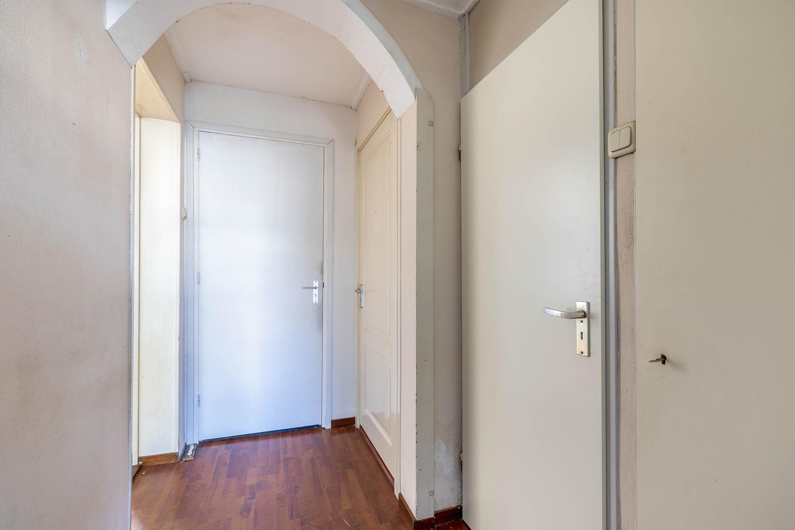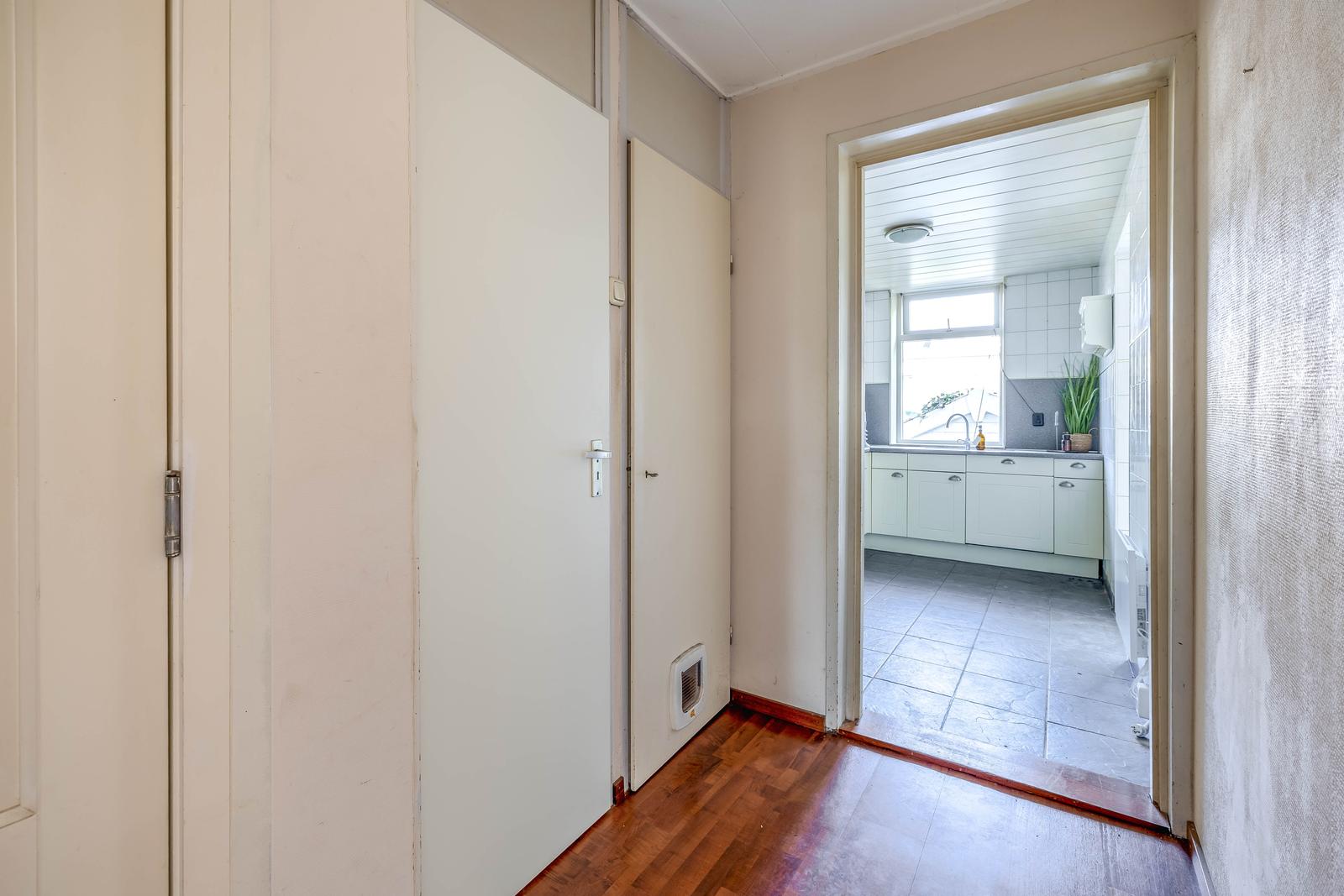 overloop met vaste kast en toegang tot de tweede achterslaapkamer.