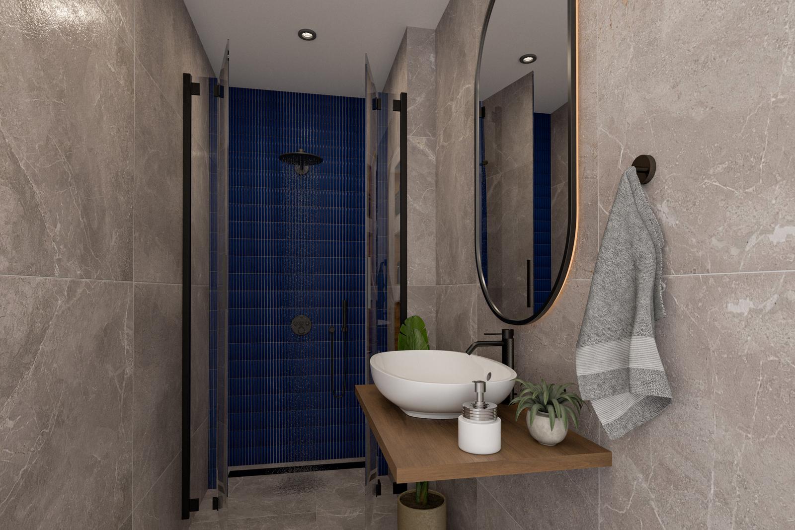 overloop met wastafel en toegang tot de achterslaapkamer.