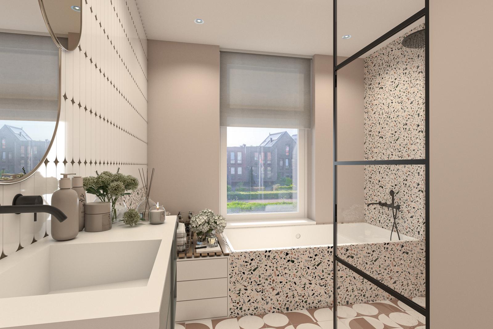 Ruime overloop, 2 ruime slaapkamers, badkamer met bad en aparte douche, toilet.