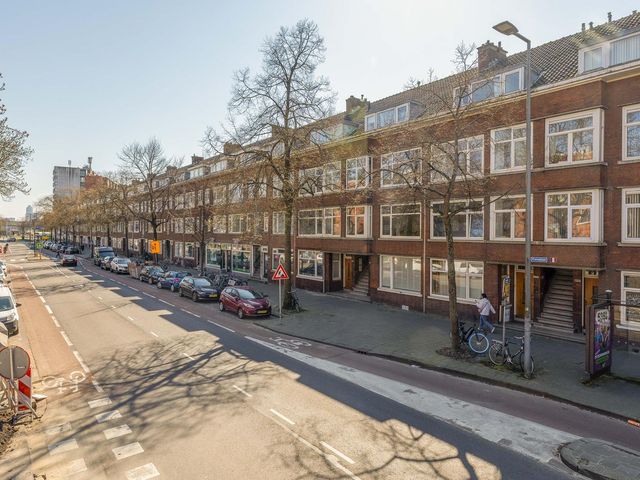 Dubbele 4-kamer bovenwoning met zonnig balkon op het zuiden en grotendeels voorzien van kunststof kozijnen met dubbelglas. Het appartement is gelegen op de eerste en halve derde verdieping, in een gezellige (winkel)straat van Rotterdam-West. De eerste verdieping van deze woning is voorzien van een keuken, toilet, bergingskasten, werkkamer en een ruime living.