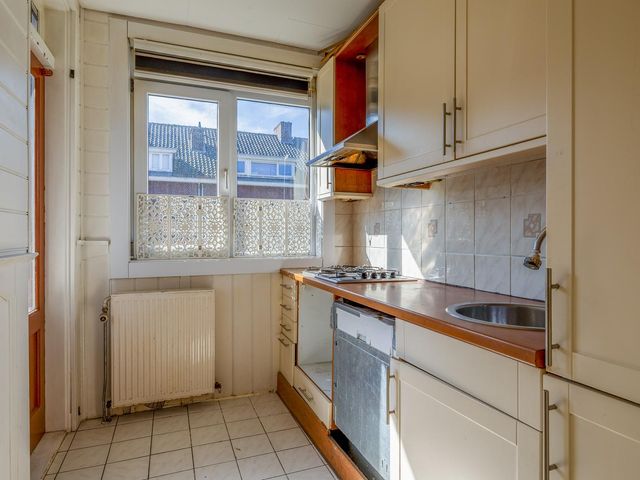 Double 4-room upper house with sunny balcony facing south and largely equipped with plastic frames with double glazing. The apartment is located on the first and half of the third floor, in a pleasant (shopping) street of Rotterdam-West. The first floor of this house has a kitchen, toilet, storage cupboards, study and a spacious living room.