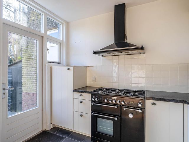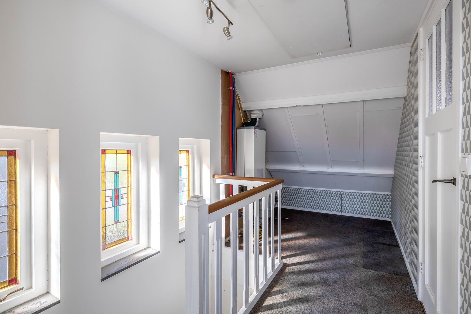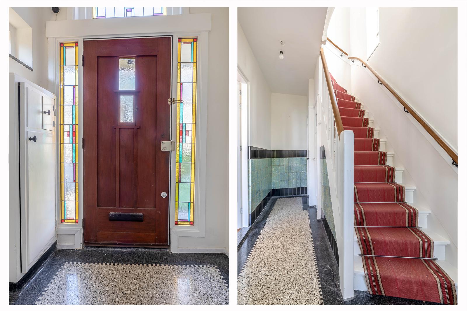 Are you looking for a characteristic house full of authentic details and yet also modern conveniences? Step into a house that breathes the warm atmosphere and solid construction of the 1930s. The stained glass windows placed between double glazing, high ceilings, original panel doors, the original granite floor restored to its former glory, the beautiful parquet floor laid in herringbone with decorative molding. The ensuite is not original, but made with an eye for detail and equipped with beautiful sliding doors. The spacious living room with large windows provides plenty of light and a pleasant living space. This house not only offers charm, but also plenty of space and comfort. With three bedrooms on the first floor and an attic with two more bedrooms, this house offers plenty of possibilities for the whole family. The bathroom and kitchen were renovated in 2012. The modern kitchen is fully equipped and . The bathroom is equipped with a walk-in shower, washbasin and extra toilet.