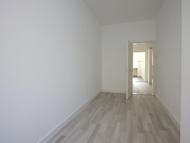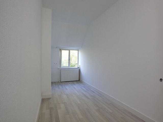 Tweede ruime slaapkamer aan de voorzijde van de woning. Door de gehele woning ligt een nette laminaatvloer en zijn de muren strak gestuct.