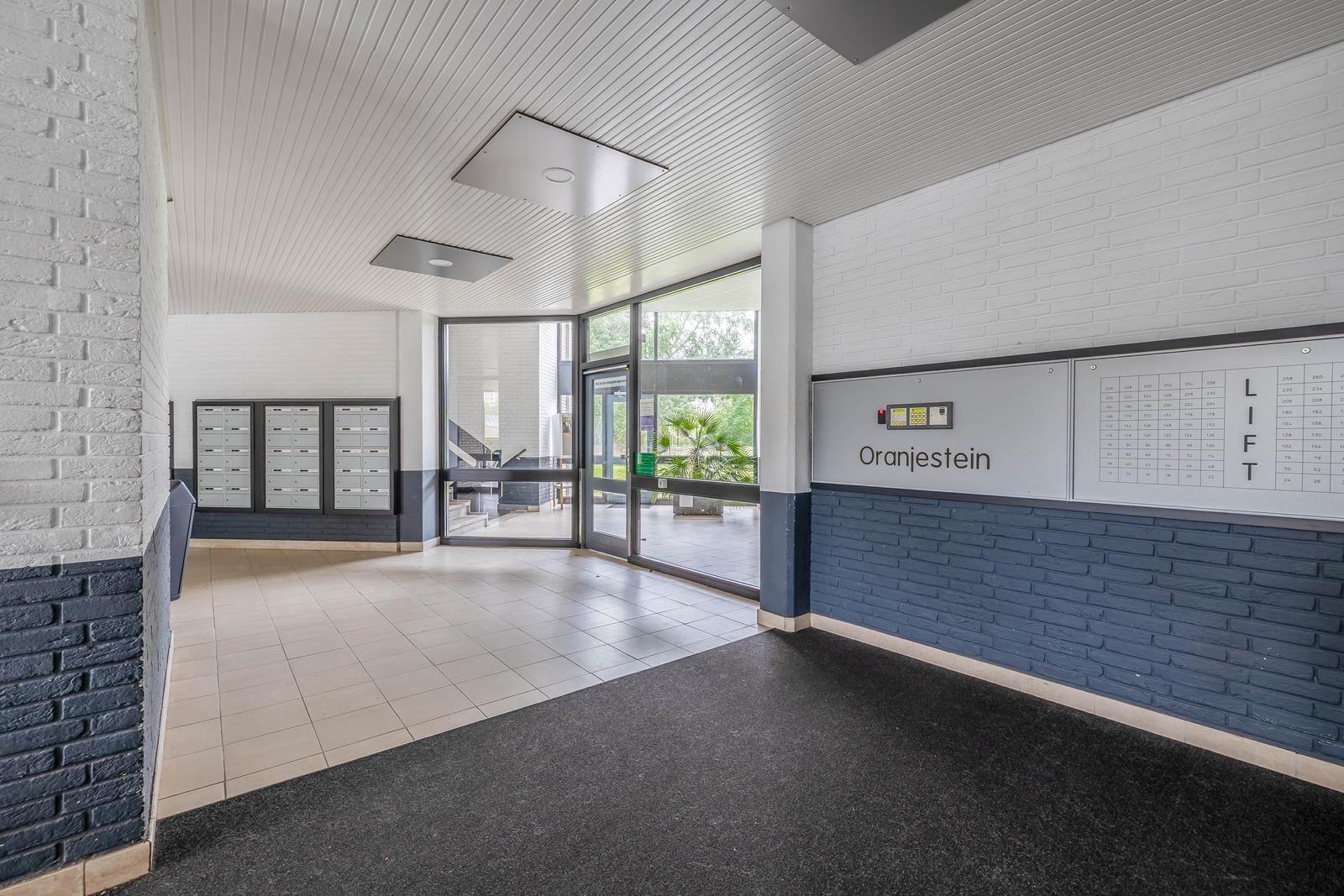 Nette onderhouden centrale entree met bellentableau en brievenbussen, intercom, deur naar afgesloten entree met liften (2x), trappenhuis naar verdiepingen, toegang naar de berging, gemeenschappelijke fietsenstalling en ondergelegen parkeergarage.
