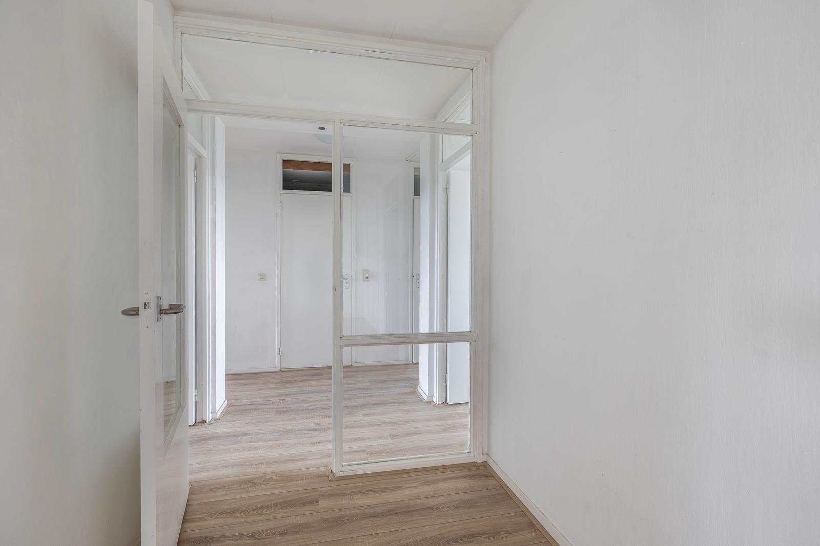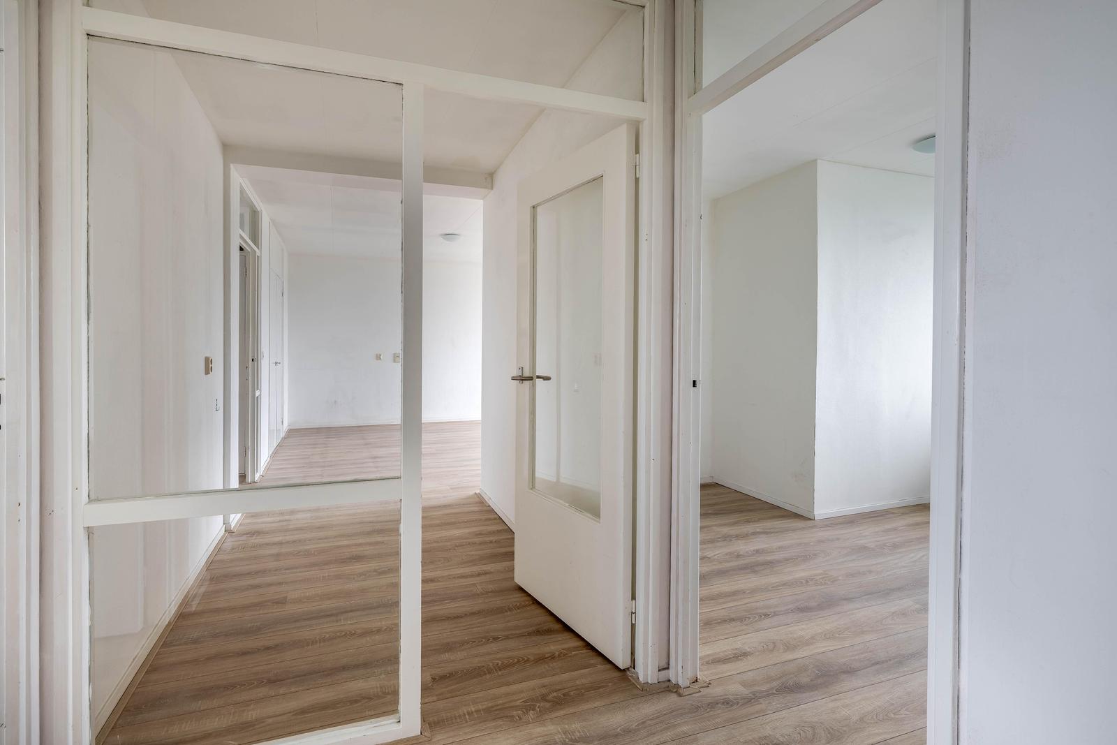 Vanuit de woonkamer bereikbare tussenhal met toegang naar de 4 slaapkamers, badkamer en separaat toilet.