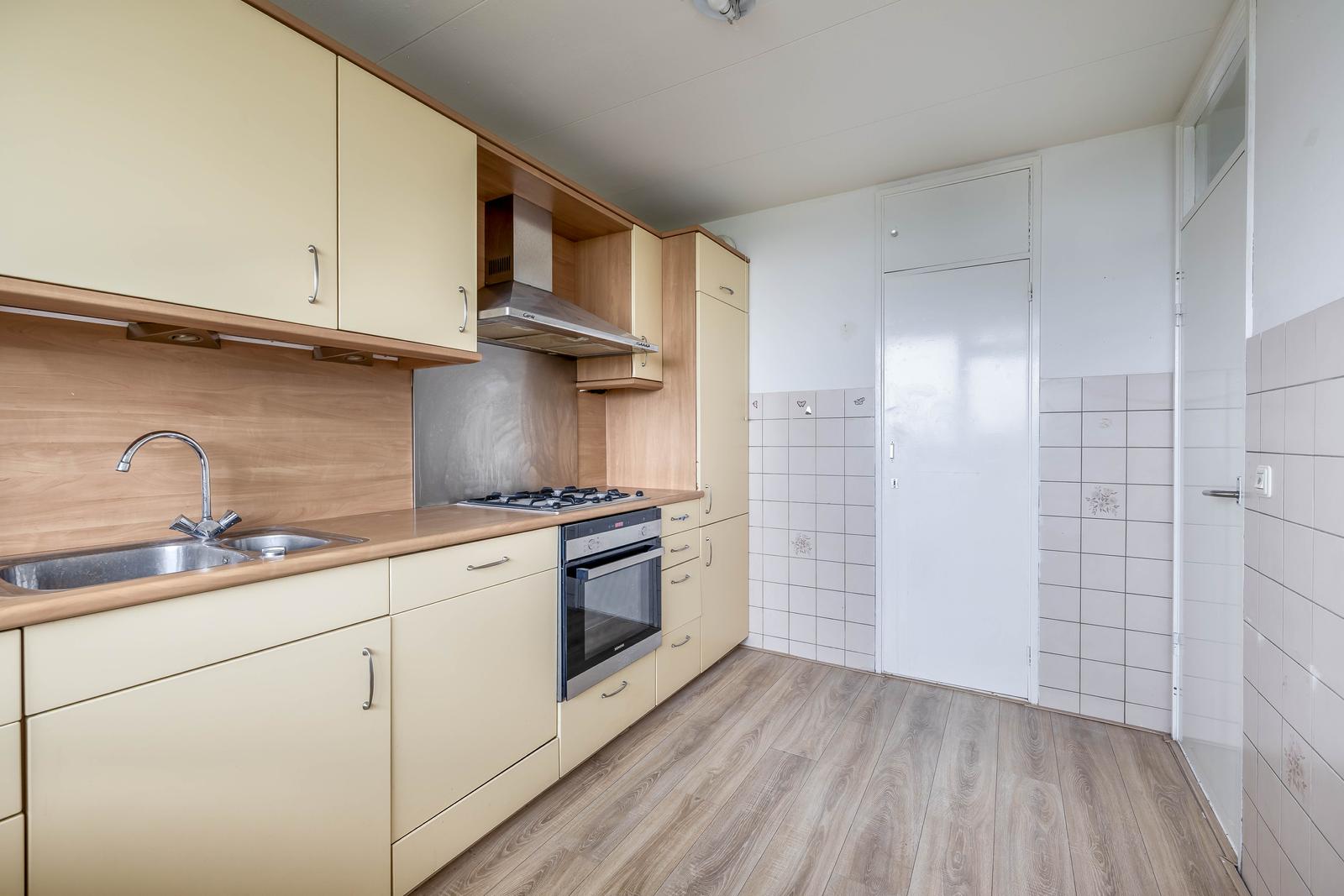 D.m.v. van cosmetisch renoveren kunt u deze woning geheel naar uw eigen smaak transformeren. Het is tevens mogelijk en vrij eenvoudig om een open keuken te creëren door de kast tussen de woonkamer en keuken weg te breken. Hierdoor zal er nog meer lichtinval zijn!