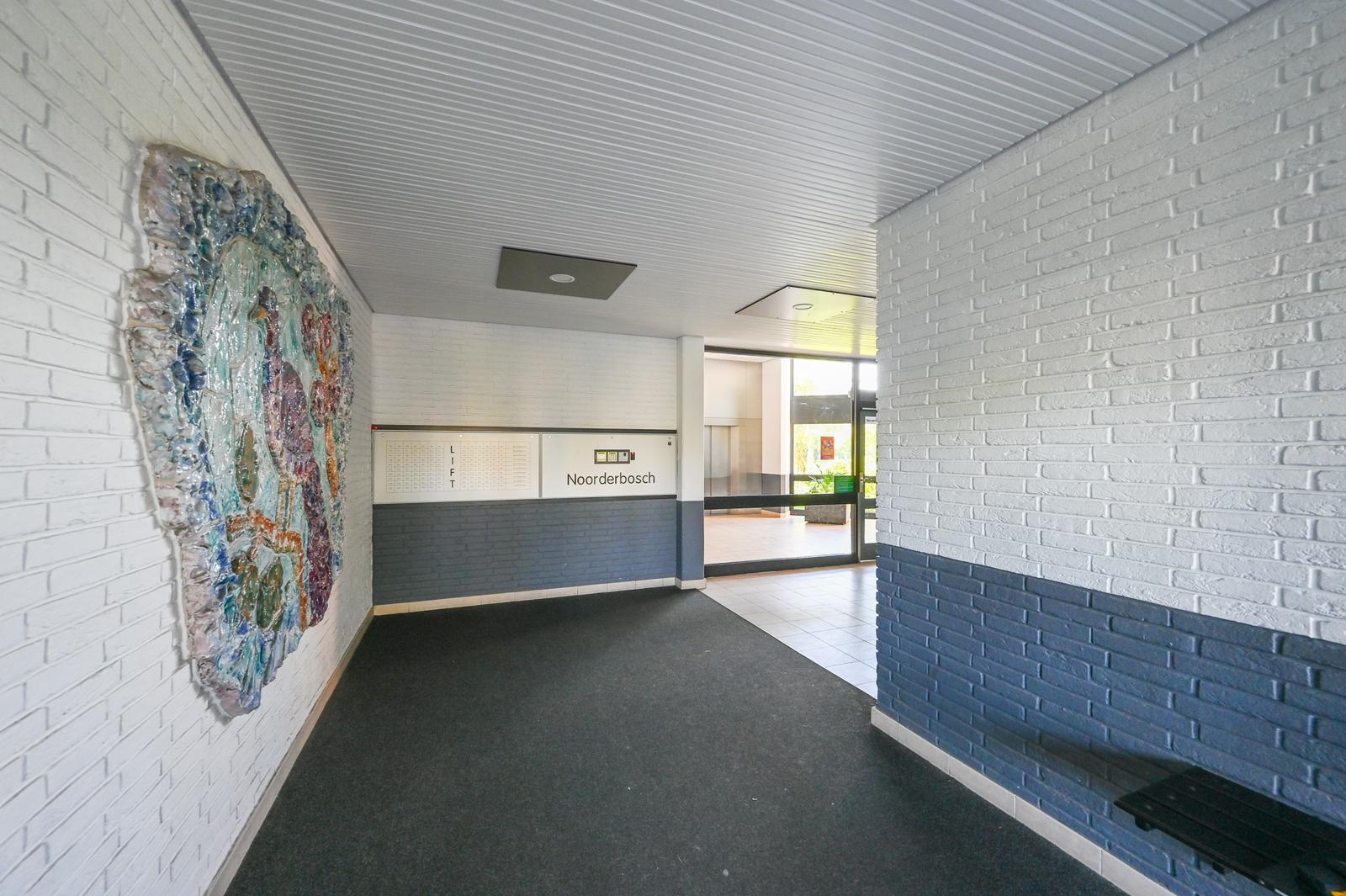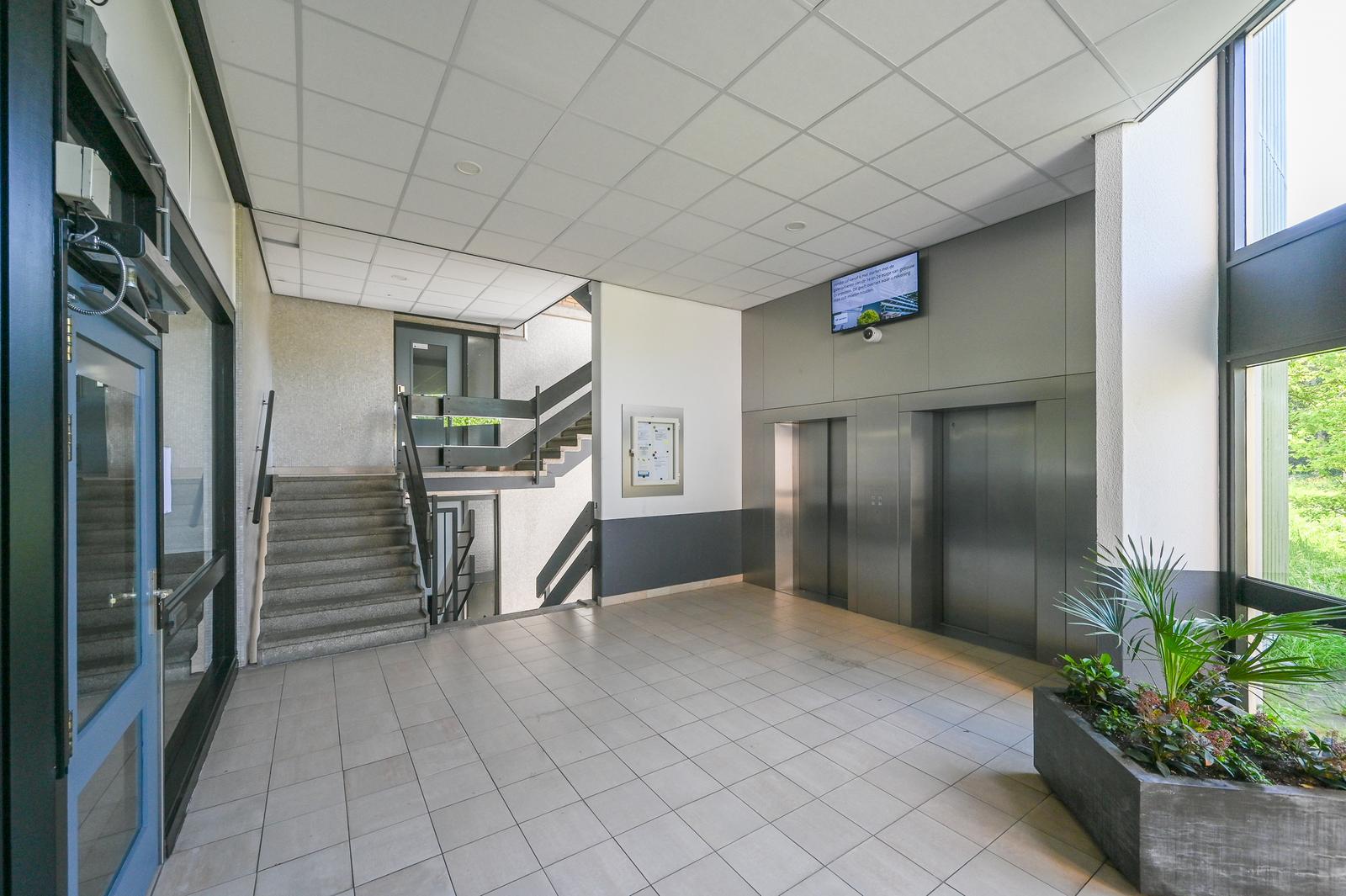 De centrale entree is voorzien van een bellenbord met brievenbussen, intercom en geeft toegang tot het trappenhuis, de liften, bergingen en gemeenschappelijke fietsenstalling.