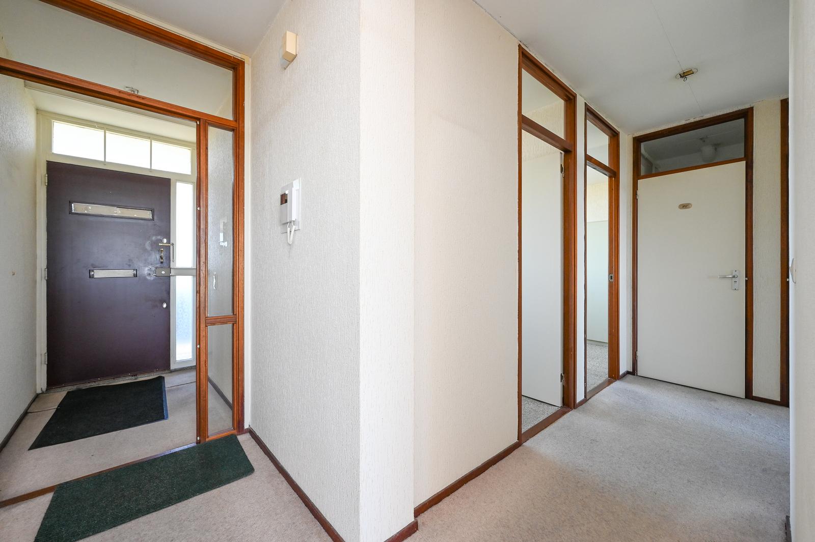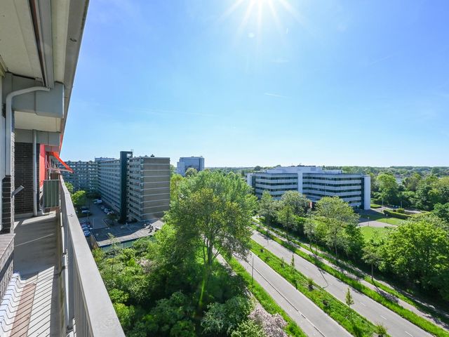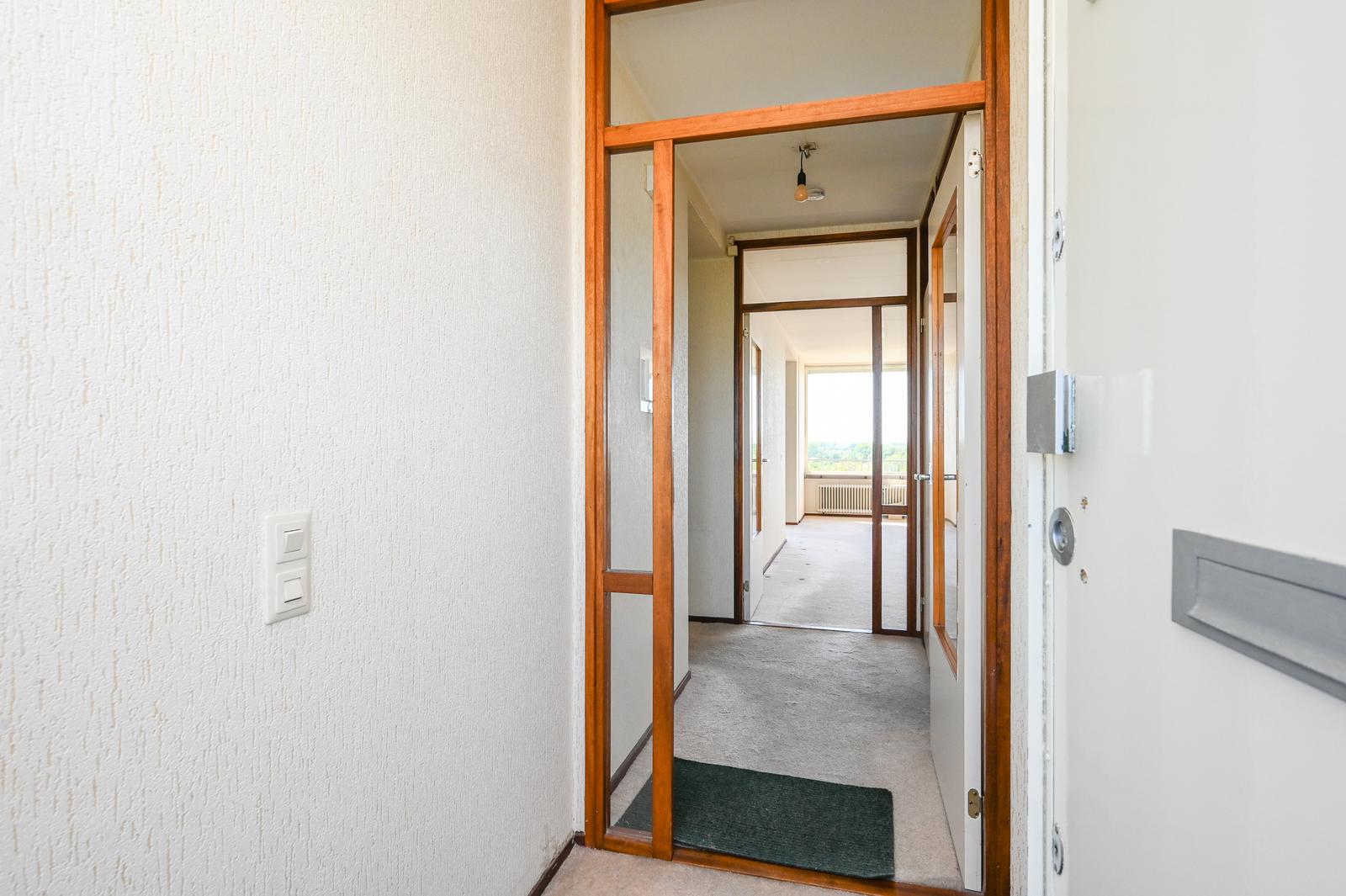 Entree appartement; hal met tochtdeur. Ruime keuken, Zeer lichte woonkamer met een fijn vrij uitzicht. Zijkamer met toegang tot het ruime balkon welke is gelegen op het zonnige zuidwesten. Vanuit de hal heeft u toegang tot de bergkast, de aan achterzijde gelegen slaapkamer en de twee aan de voorzijde gelegen slaapkamers. Separaat toilet. De ruime badkamer kunt u indelen naar eigen wens.