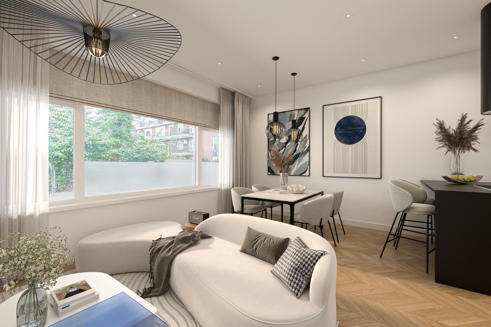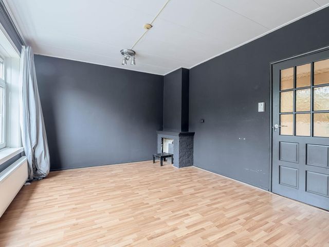De woonkamer en slaapkamer zijn voorzien van een laminaatvloer, grote ramen en dubbelglas.